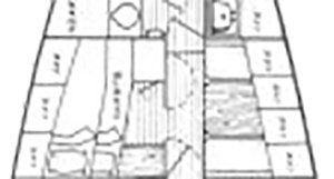 Salle de bain : partagée avec la cabine tribord, avec WC, douche et lavabo